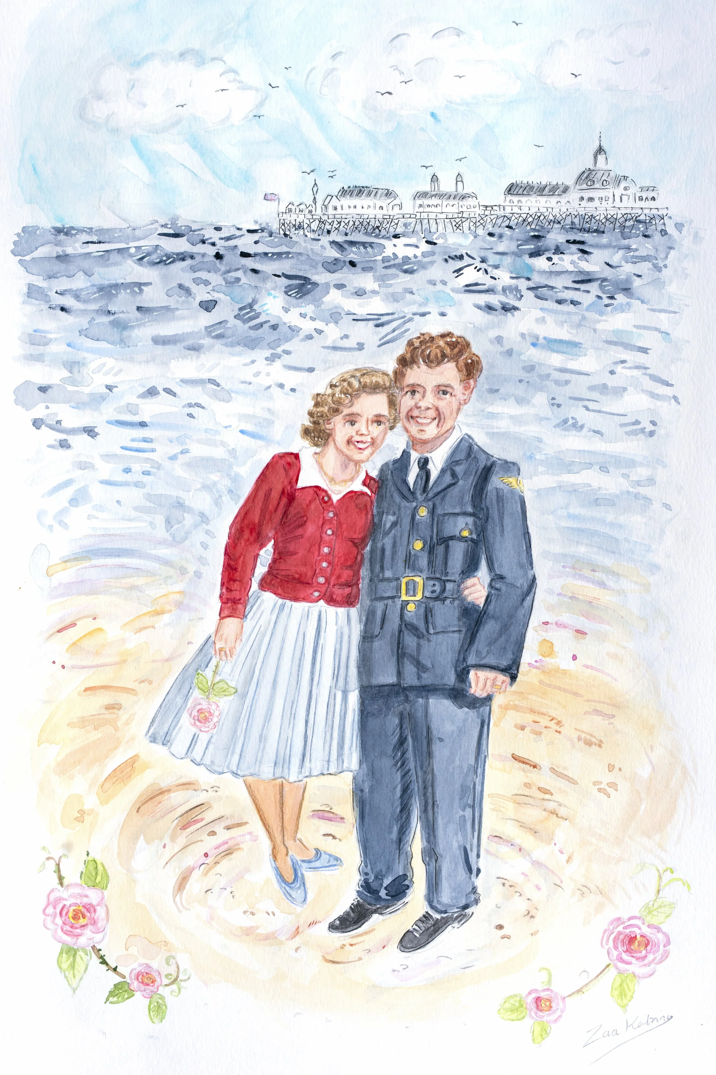 Package 4 An original A3 hand painted illustration, or family grouping, with an individualised scenic and an agreed background (Ā£80+). Price may vary according to amount of people to depict, specialist background details and so on.